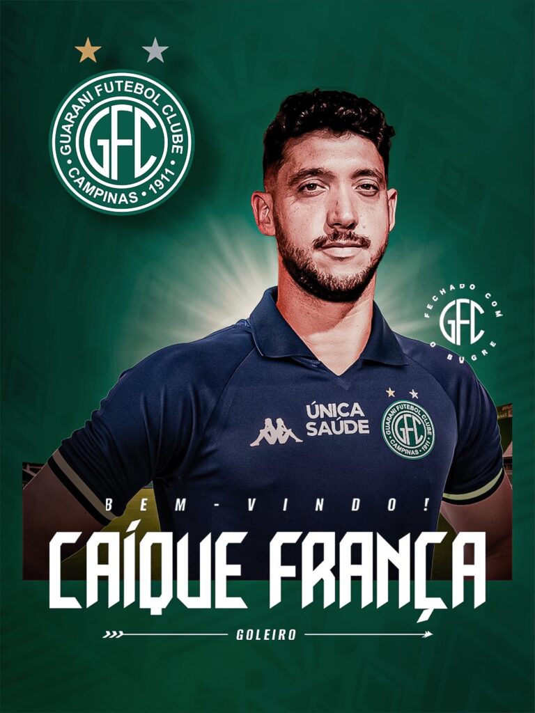 O Guarani apresentou oficialmente o goleiro Caíque França como um dos principais reforços para a temporada 2026. O anúncio marca o início de um novo capítulo na carreira do atleta, que chega ao Brinco de Ouro após uma passagem recente pelo Sport, encerrada antes mesmo do início oficial das competições.