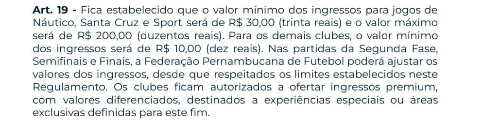 O Clube considera os valores manifestamente abusivos, desproporcionais e destituídos de qualquer razoabilidade. Além disso, vale ressaltar que se trata de uma majoração de 10 vezes em relação aos valores do último jogo com mando de campo do Retrô, que foi diante do Maguary e com ingressos para visitantes no valor de R$ 20, de acordo com o Boletim Financeiro oficial da FPF sobre a referida partida.