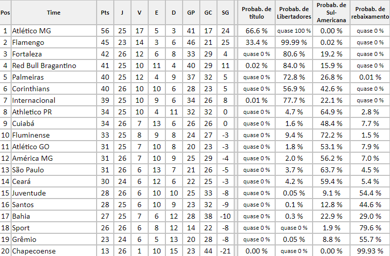 Com o término da 26ª rodada da Série A do Campeonato Brasileiro e já de olho na rodada seguinte que começa neste final de semana, o site chance de gol trouxe maiores detalhes sobre os dados e estatísticas sobre o confronto pela competição nacional.
